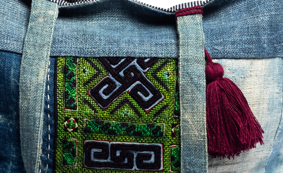 Handmade tote bags from our TRE-YOUNG collection. The bags are made from fabric from Sapa, giving birth to the new from the tradition.